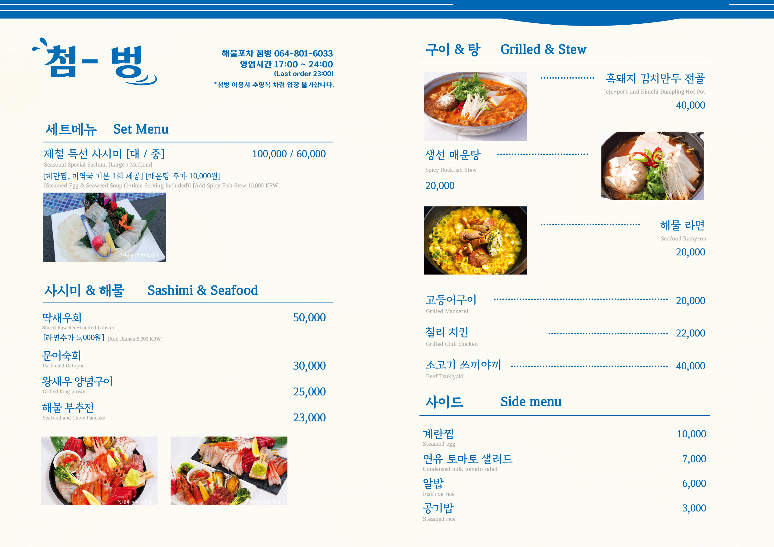 해물포차 첨-벙은 신선한 제주의 해산물로 정성껏 준비한 요리를 맛보실 수 있습니다. 다양한 주류와 함께 에코랜드 호텔에서의 밤을 길게 즐겨보세요.