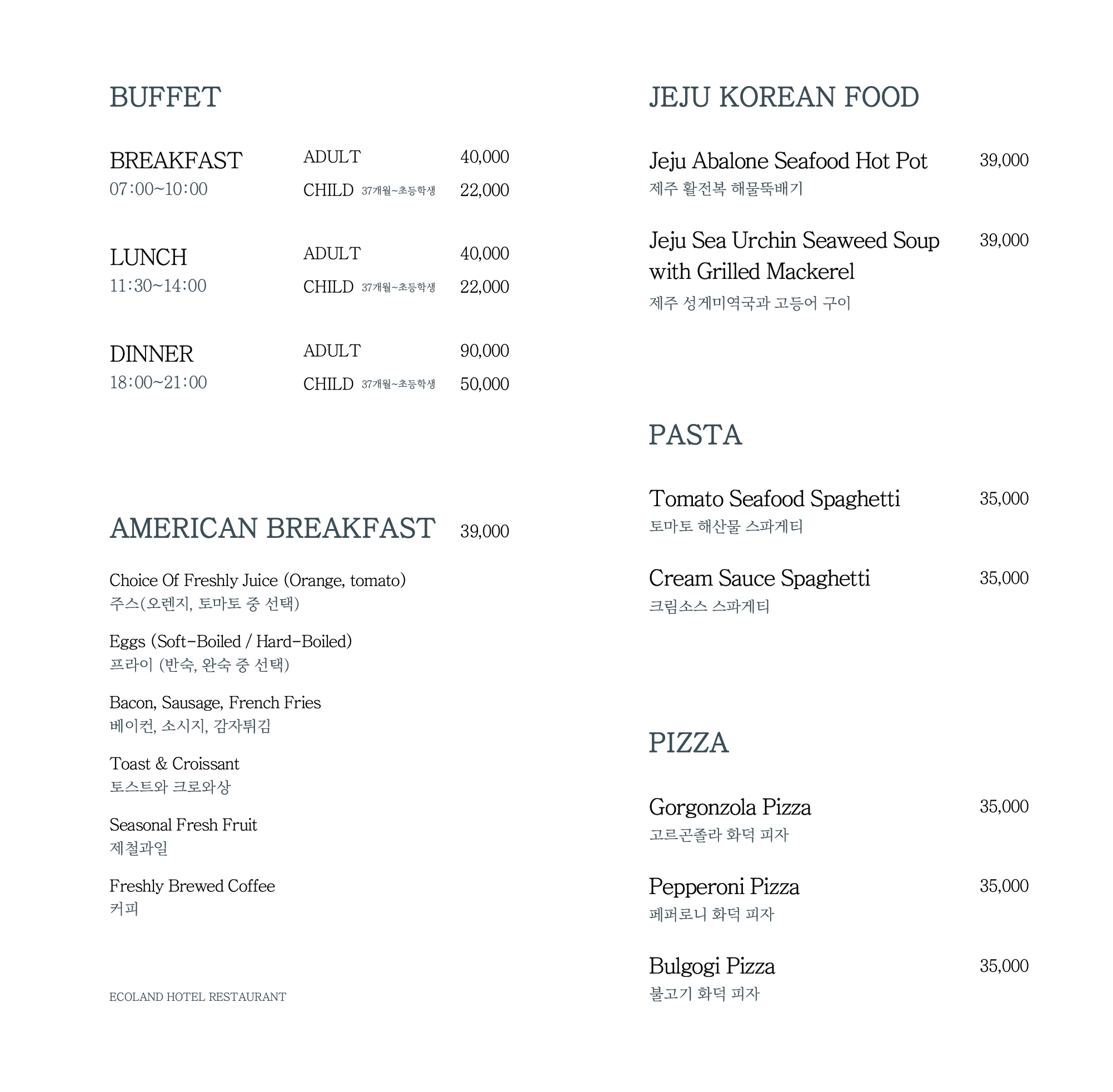 제주의 신선한 재료로 하루를 여는 조식 뷔페부터,